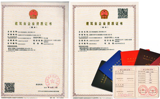 • 交通工程專業承包資質、裝修裝飾工程專業承包資質、建筑工程總包資質、市政公用工程總包資質、安全生產許可證齊全;