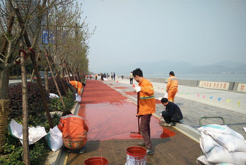 一、選用彩色防滑路面材料 對所用的顏料、填料及溶劑要控制好其含水量;在底漆配方中注意盡量不要用到可溶性的填料;溶劑的使用量盡量提前統籌好,避免過多殘留;如果所處環境比較潮濕,則使用浸透低的基料。 二、施工的過程中,嚴抓每個環節質量。 彩色防滑路面施工的時候盡量避免高溫、濕潤等不良氣候環境,施工外表的溫度應在露點3℃以相對溫度不高于85%;如果施工前涂層遇雨或凝露、結霜等,一定等其完全枯燥后才可以涂刷彩色防滑路面材料;在進行施工之前務必將材料稀釋,攪拌均勻,然后放置一段時間再進行涂刷,特別針對雙組分彩色防滑路面材料,因為它具備一定的熟化期,這樣做的目的就是防止混合不均勻和反響而產生熱,減少氣泡的產生。