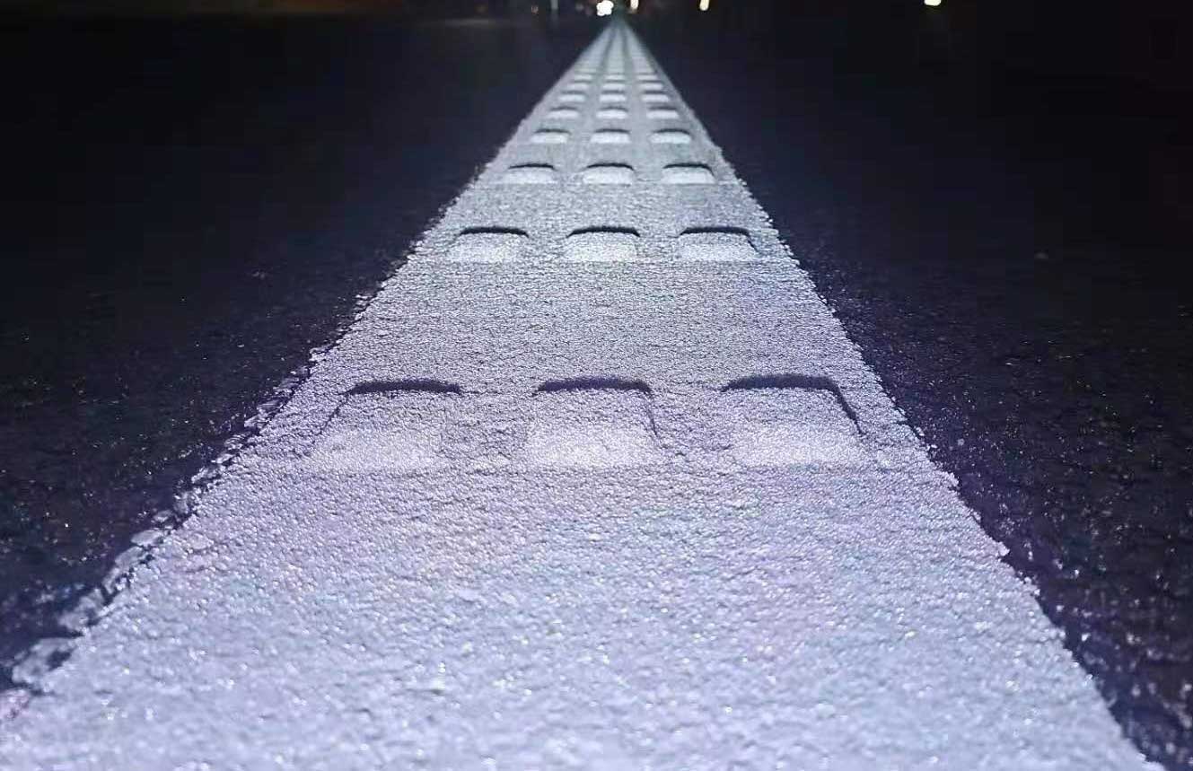 其一,雙組份震蕩標線上的凸起塊在車輪的碾壓下會發出一種轟隆聲,能提醒駕乘人員已壓線,保證行車安全;