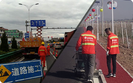 專注熱熔、常溫、雙組份、熒光、彩色防滑標線涂料,自有專業施工隊與施劃設備;
